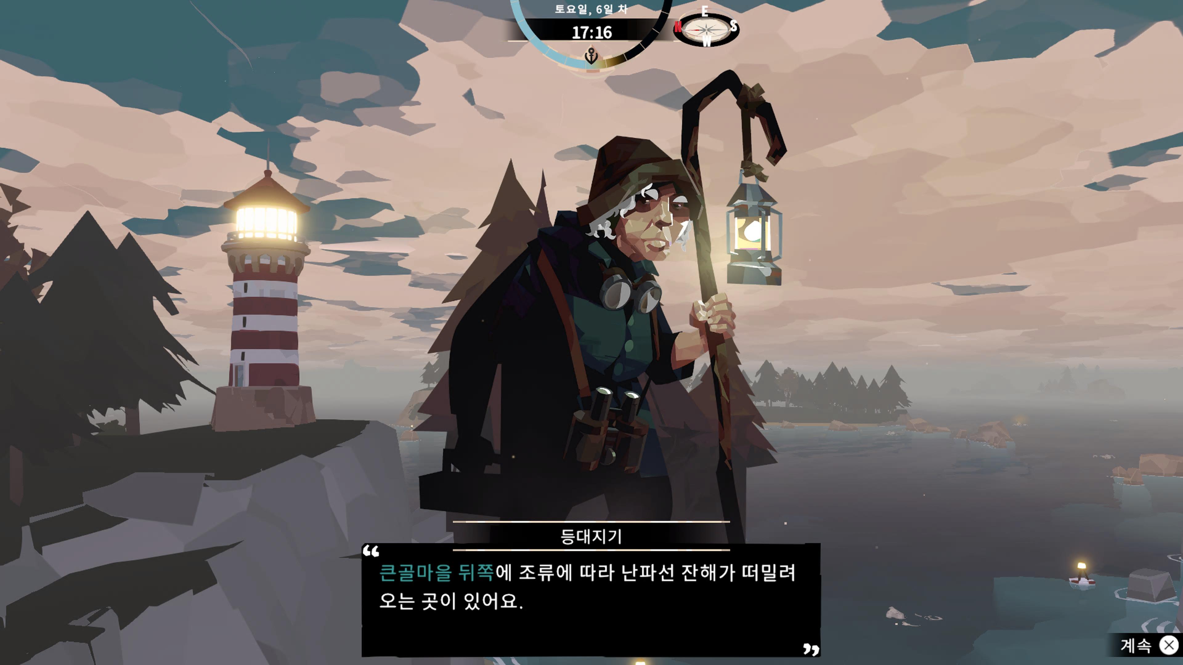 블랙스톤 섬에서 퀘를 받고 난 후, 큰골마을로 귀환해서 등대지기에게 말을 걸어 열쇠의 위치를 받아낸다.