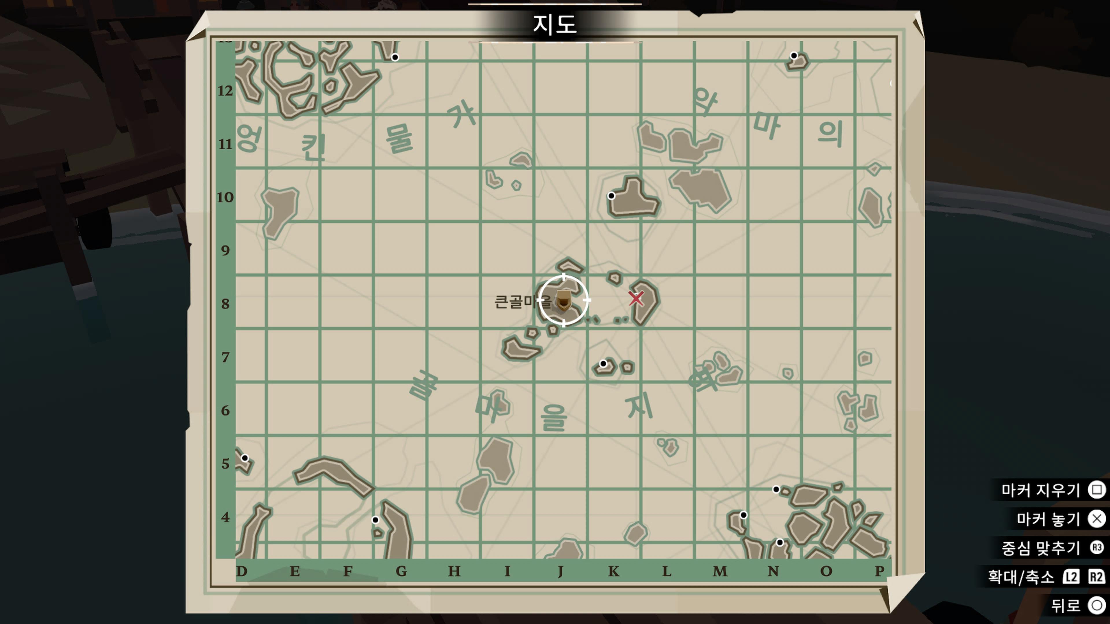 유물이 있는 곳은 빨간 점으로 된 소용돌이? 가 바다에서 피어오르니 확인이 쉽다.