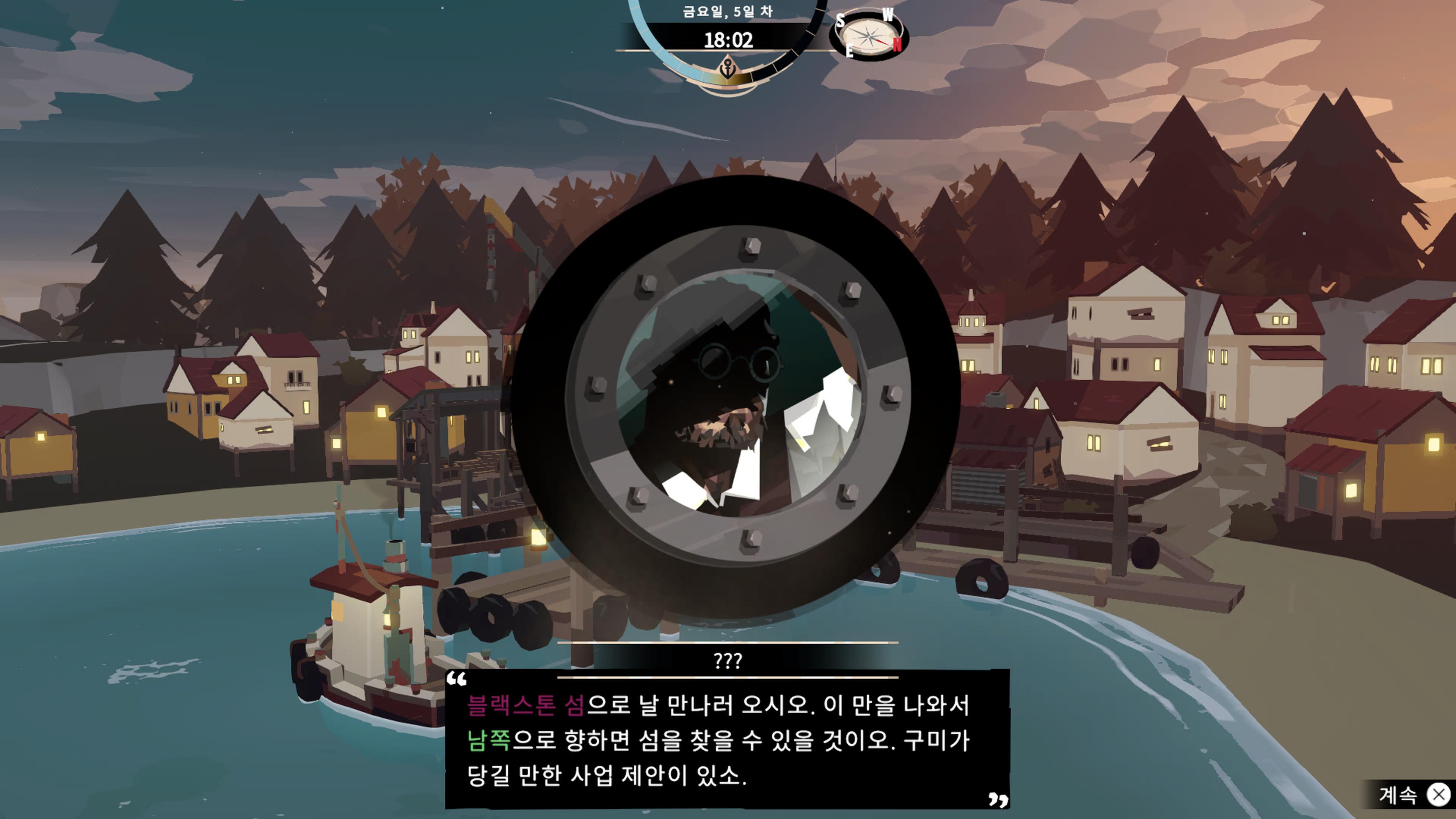 그 후 섬에 데려다주면 강철점에 자리 잡은 노동자가 연구 부품을 준다.