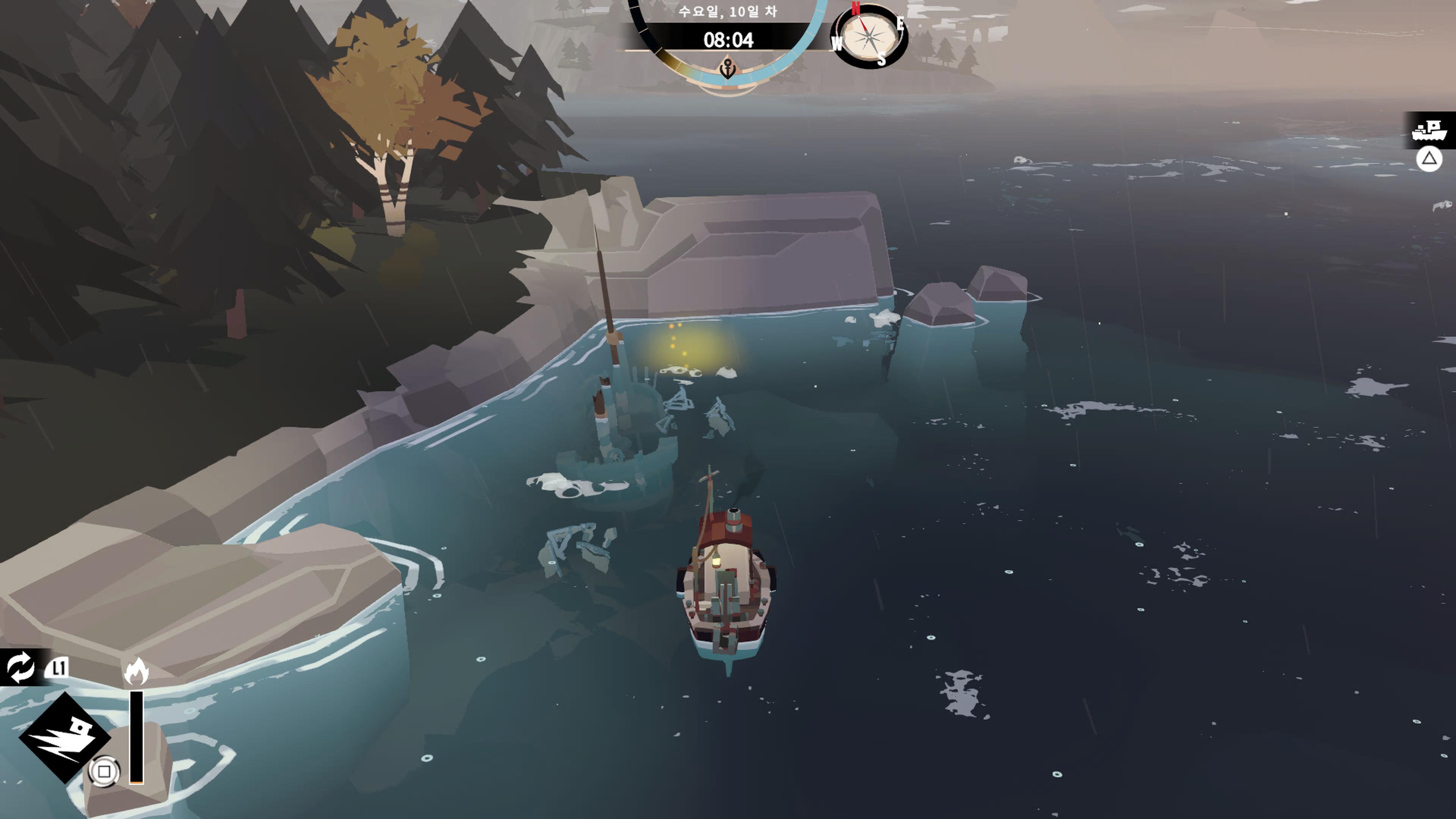 강철점 왼쪽 작은 섬 두 개 사이에 가면 뜬끔없이 배가 하나 있다.
