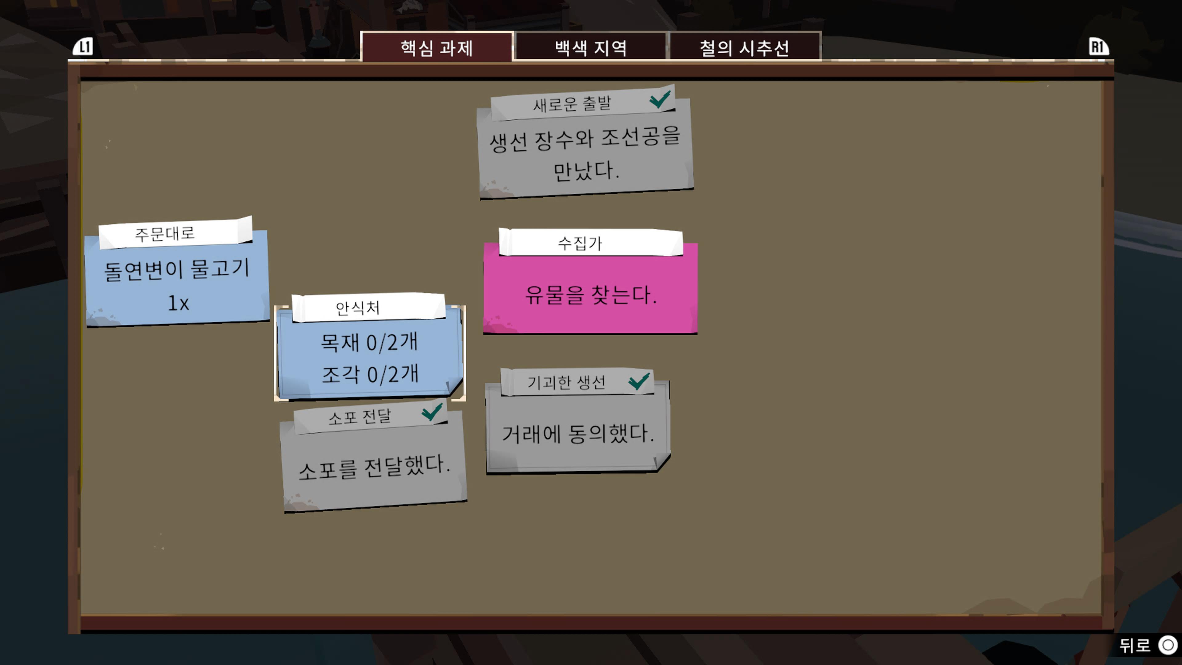 첫날이니만큼 다섯 지역 중 골마을 지역 퀘스트만 먼저 살펴봤다.