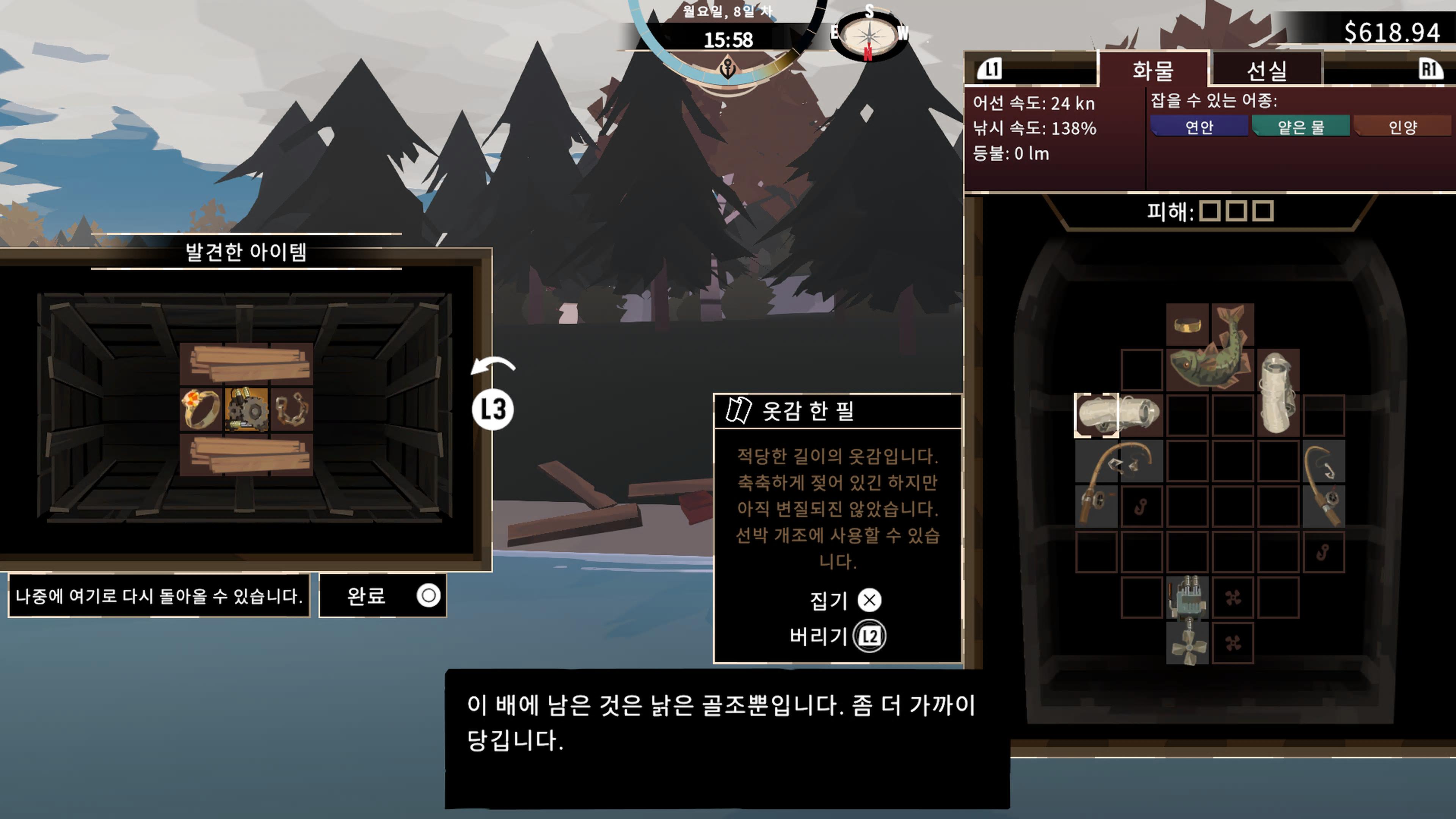 이 퀘스트를 해야 나무판자나 금속 조각 등을 바다에서 인양할 수 있게 된다.