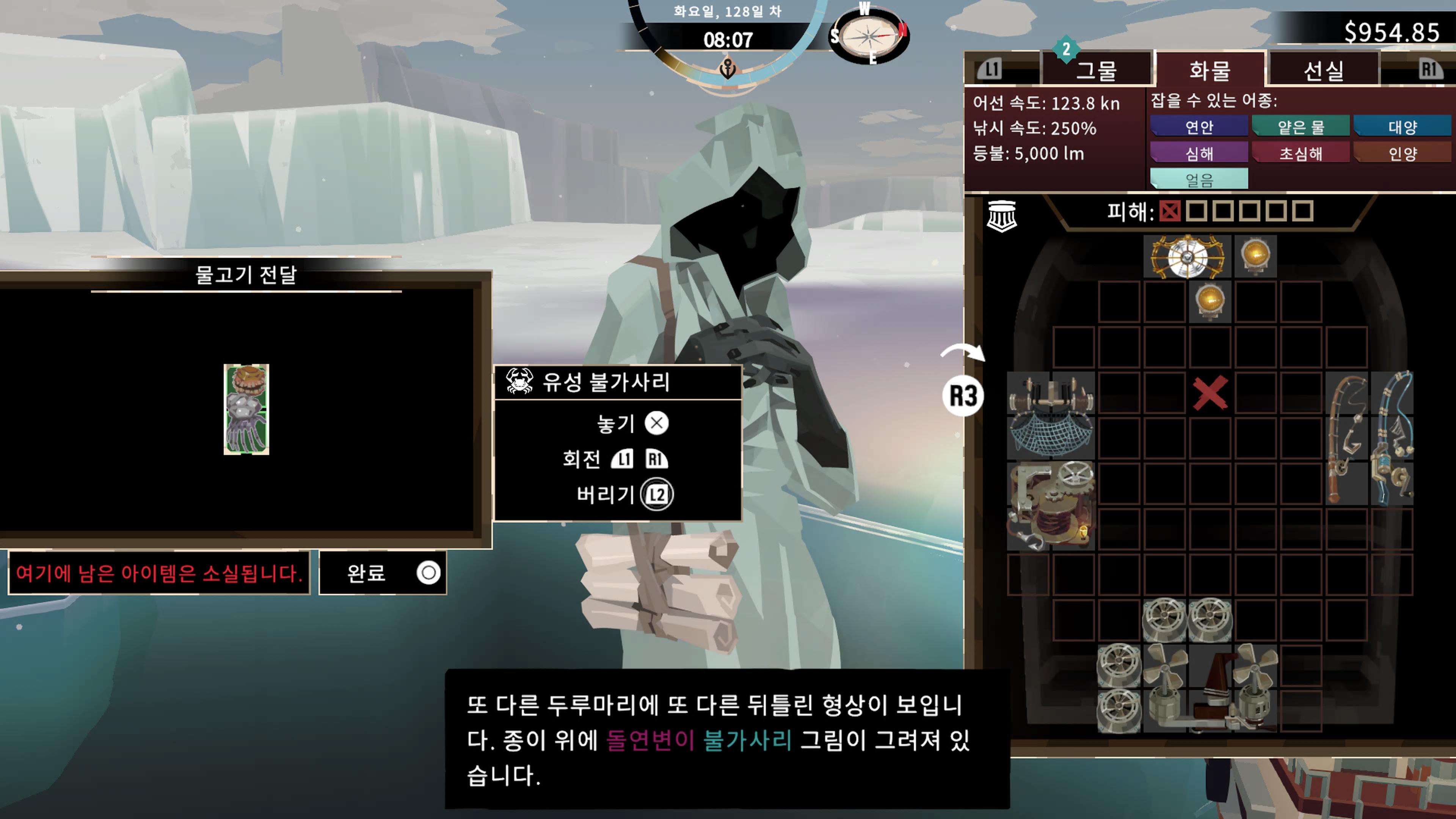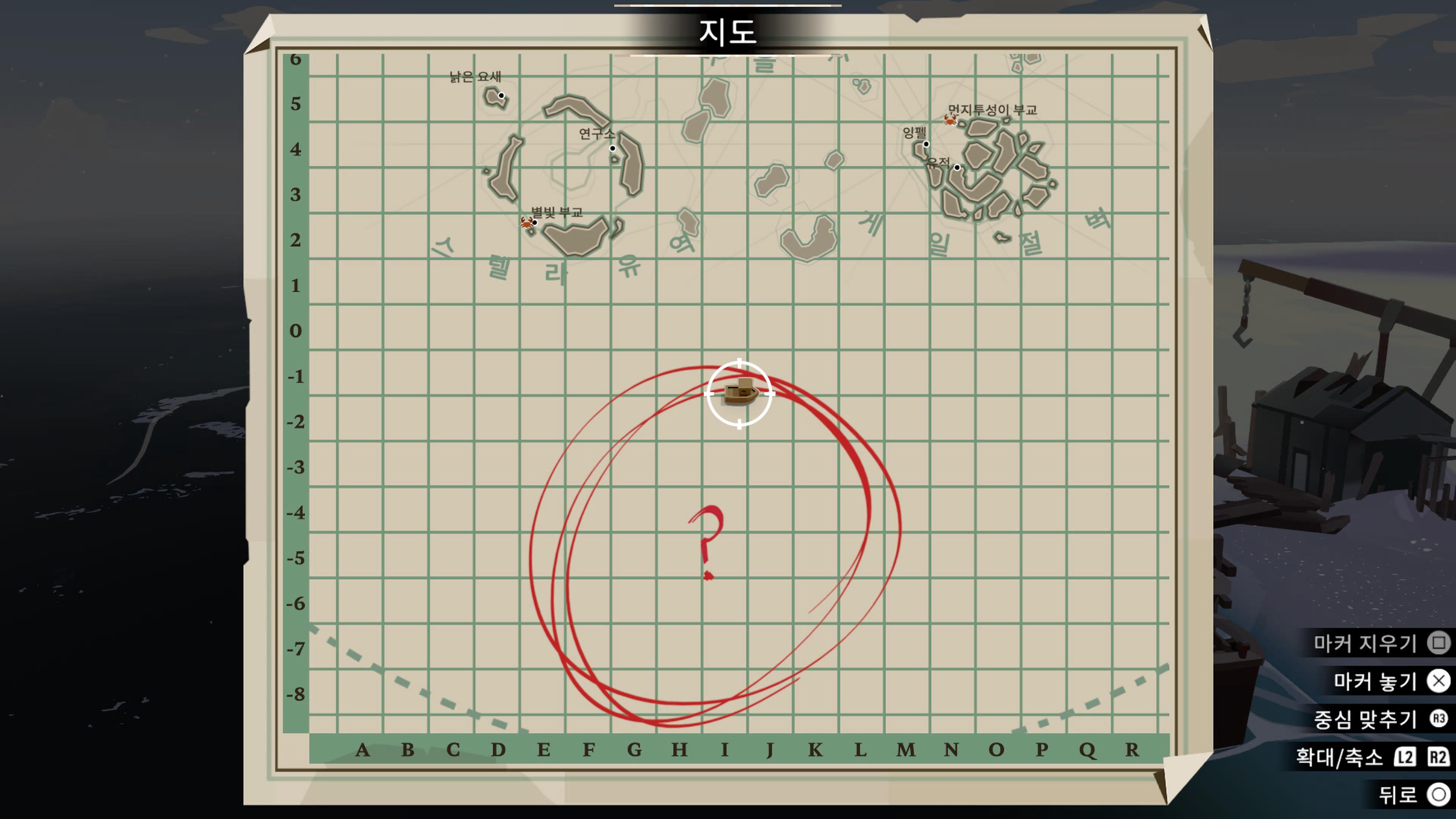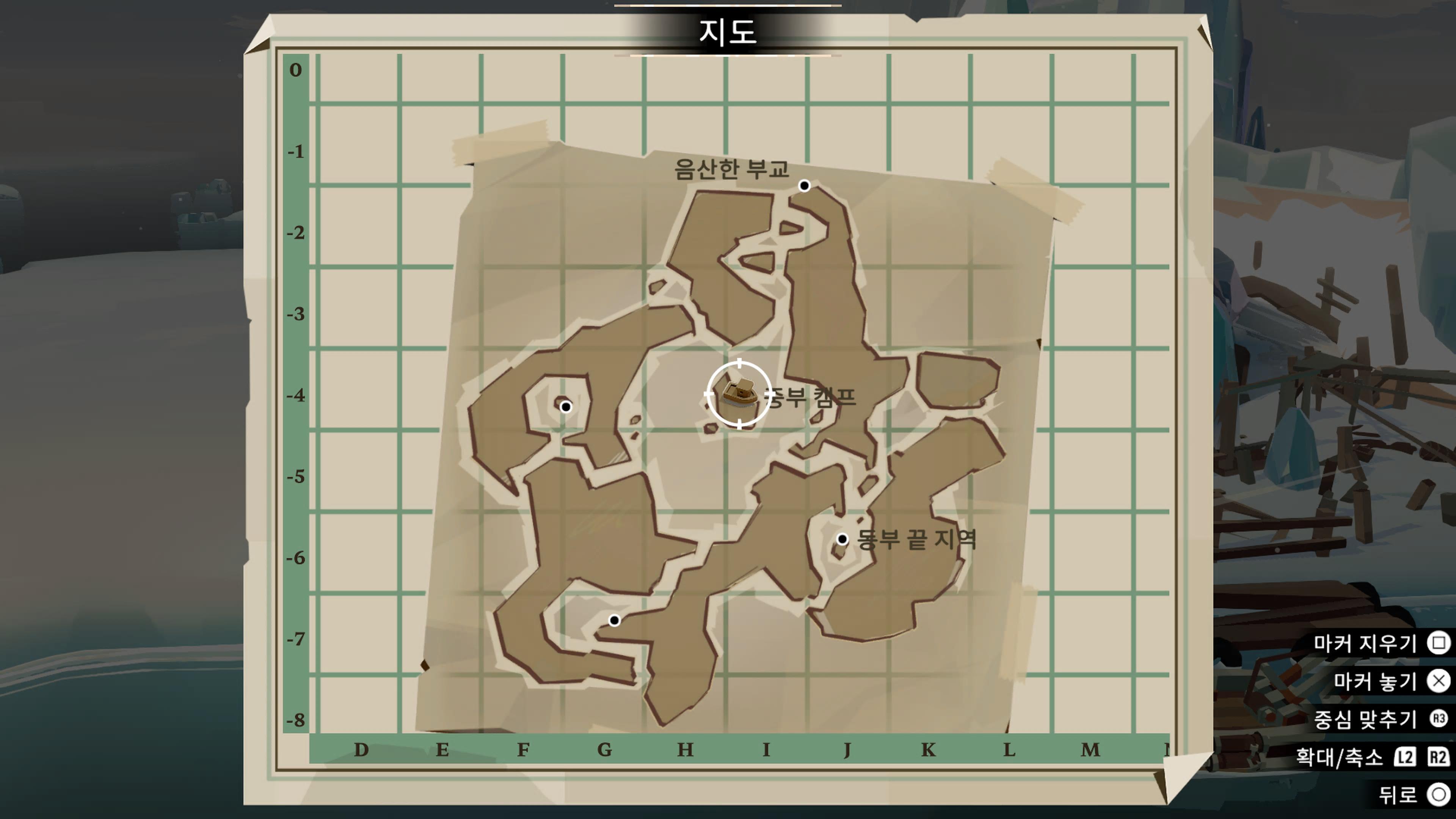 뚫린 길로 들어가자마자 보이는 항구에 정착해 준 뒤 '얼어붙은 오두막'을 잘 뒤져주면 지도를 찾을 수 있다.